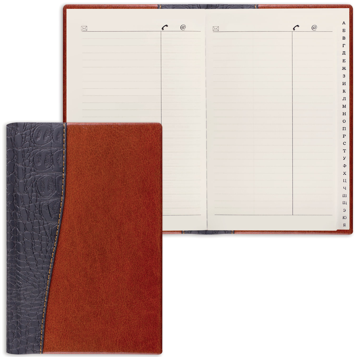 Телефонная книжка А5 (136х202 мм), BRAUBERG "Cayman", комбинированная гладкая и кожа крокодила, 96 л