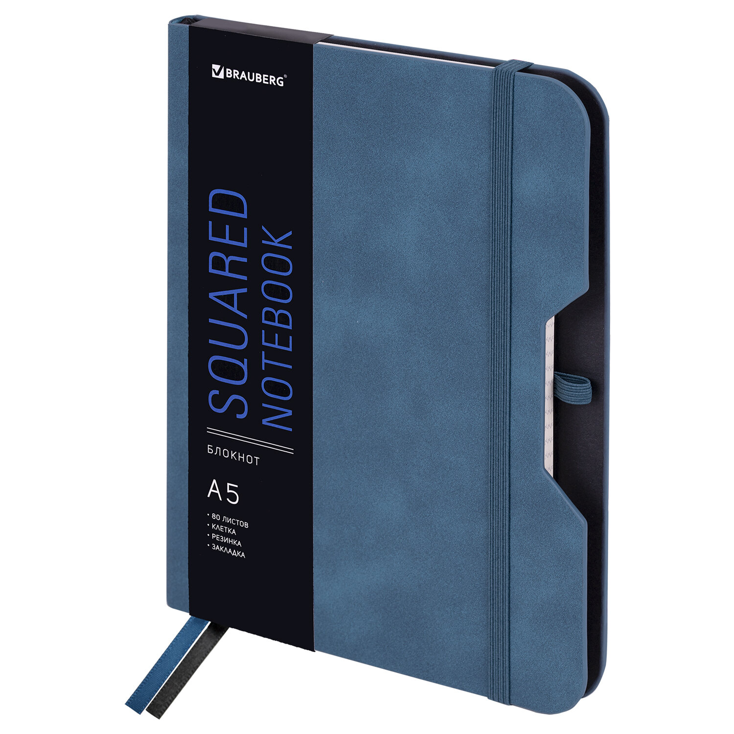 Блокнот А5 "NOTE", под кожу софт-тач, с резинкой, 80 л., клетка