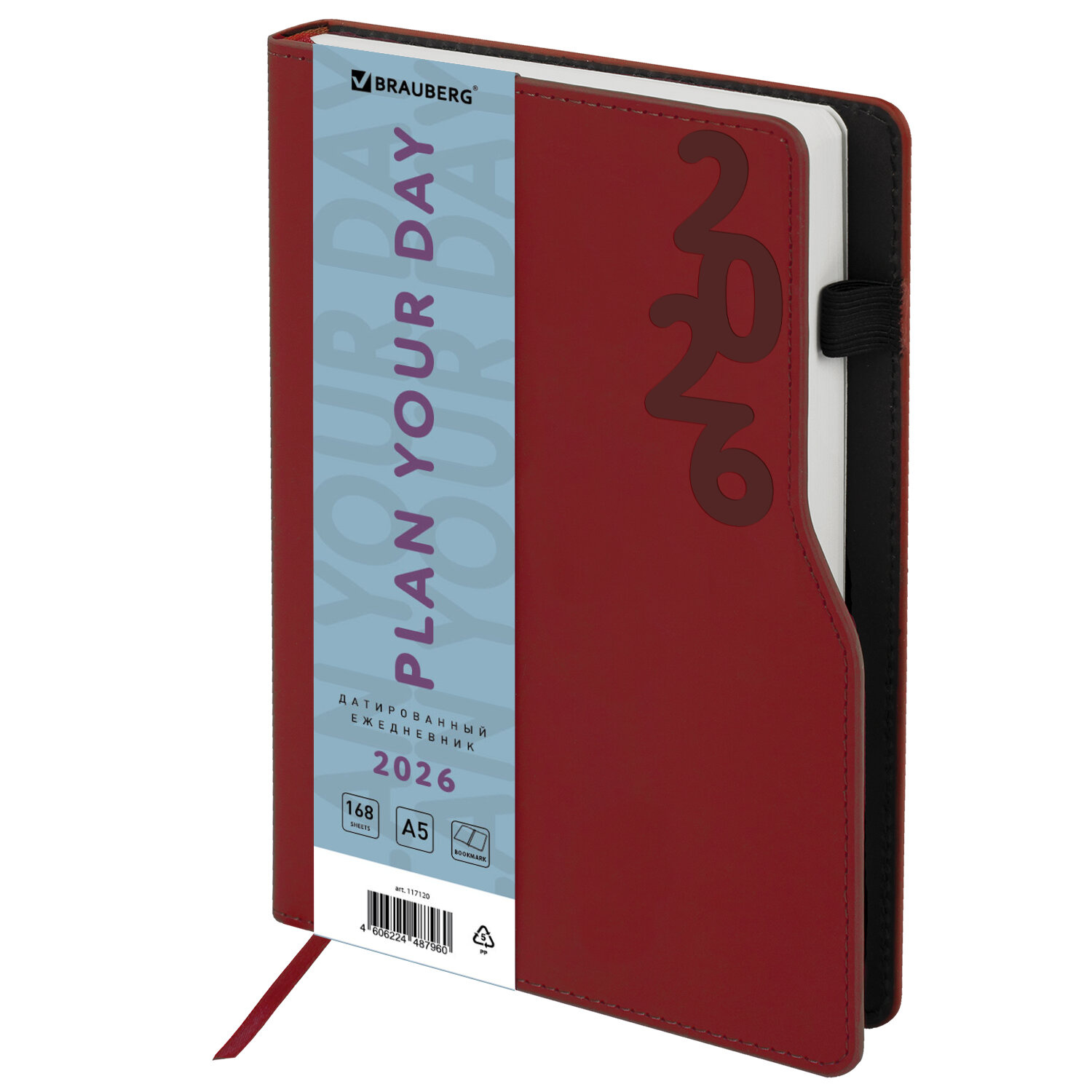 Ежедневник датированный 2026 А5 BRAUBERG "Up" под кожу, софт-тач, держатель для ручки