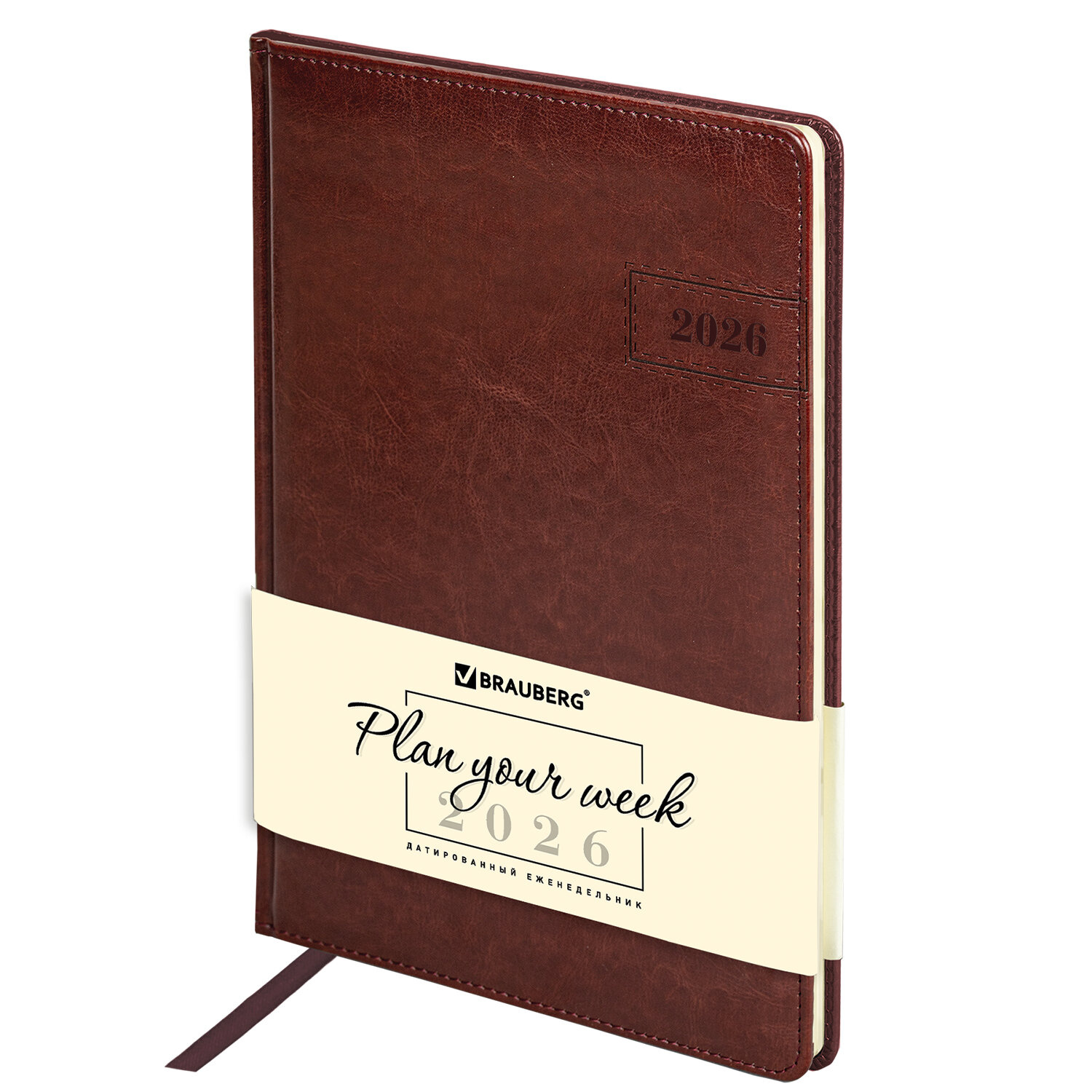 Еженедельник датированный 2026 А4 "Imperial", под кожу, большой формат