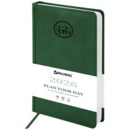 Ежедневник датированный 2026 А5 BRAUBERG "Plain" резинка, держатель для ручки