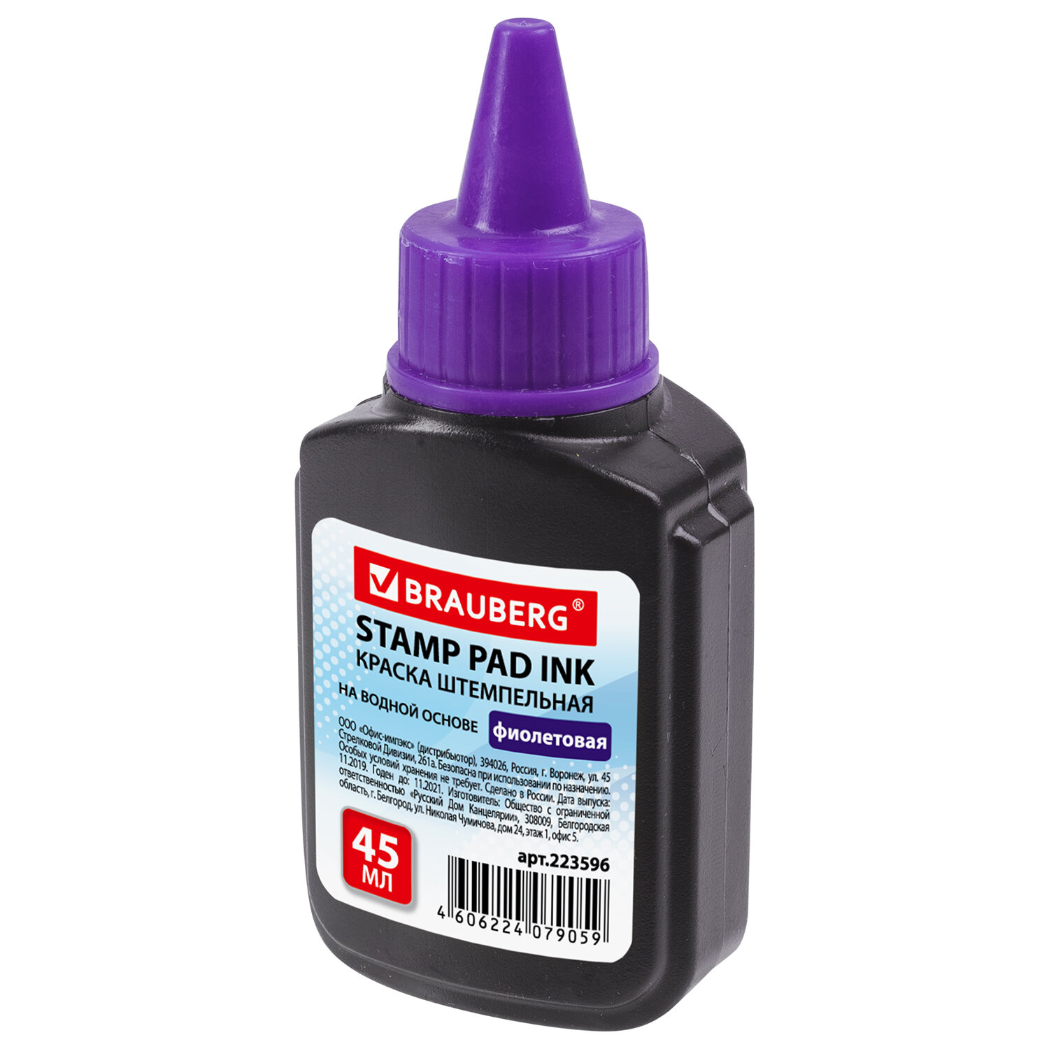 Краска штемпельная BRAUBERG, фиолетовая, 45 мл, на водной основе