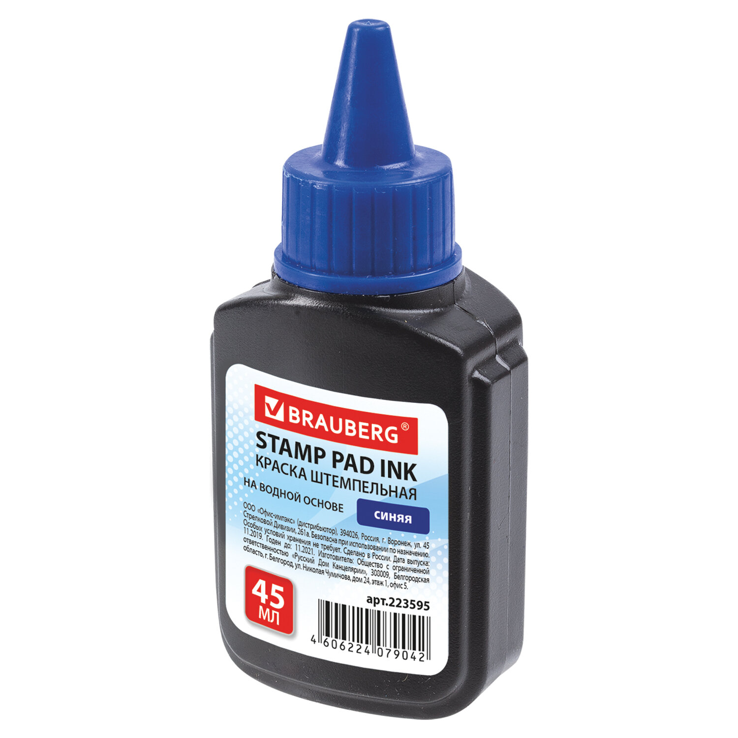 Краска штемпельная BRAUBERG, синяя, 45 мл, на водной основе