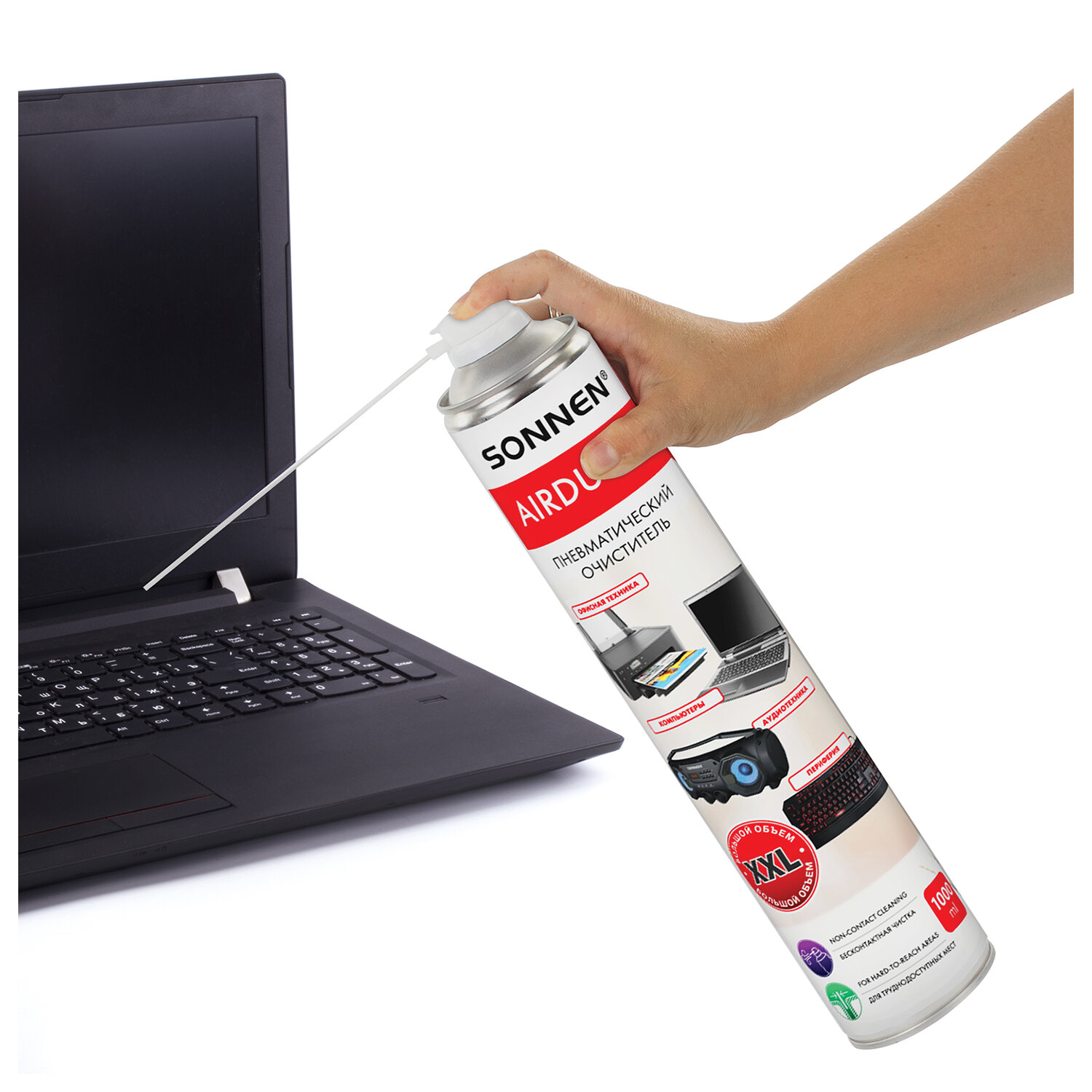 Чистящий баллон со сжатым воздухом/пневмоочиститель SONNEN предназначен для бесконтактного удаления пыли и мелкого мусора из труднодоступных мест и внутреннего пространства компьютерной техники, аудио-, видео- и фотоаппаратуры, офисной и бытовой техники.
