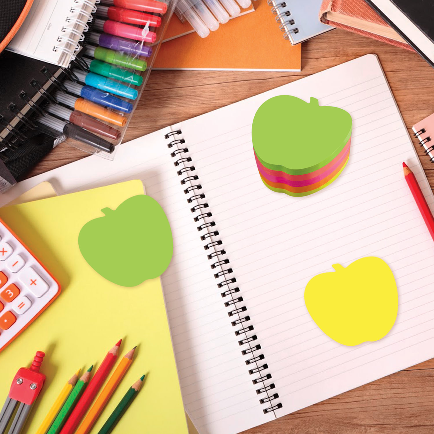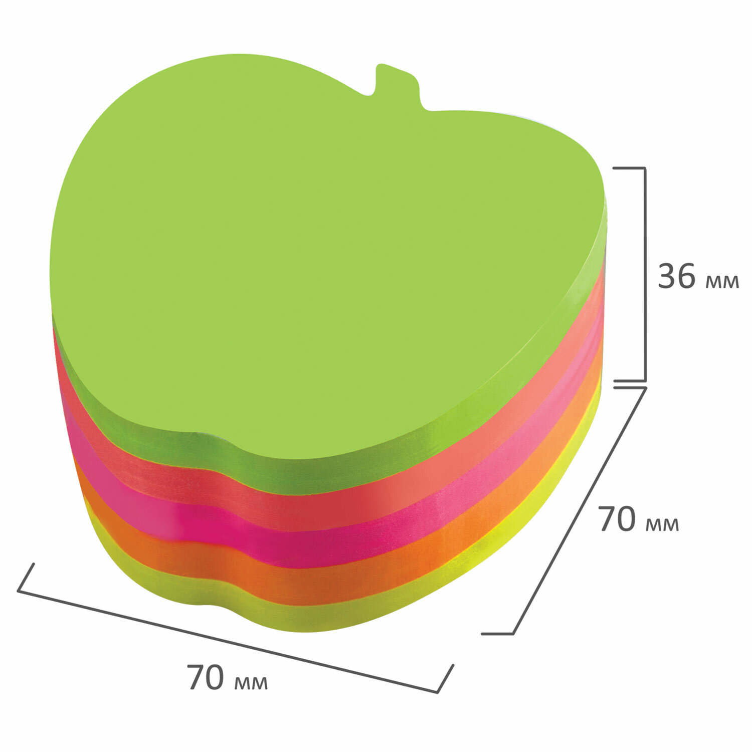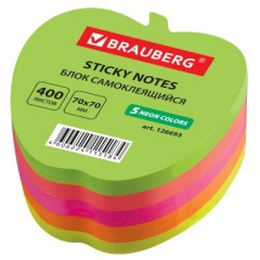 Блок самоклеящийся фигурный "Яблоко" неон, 400 листов, 5 цветов