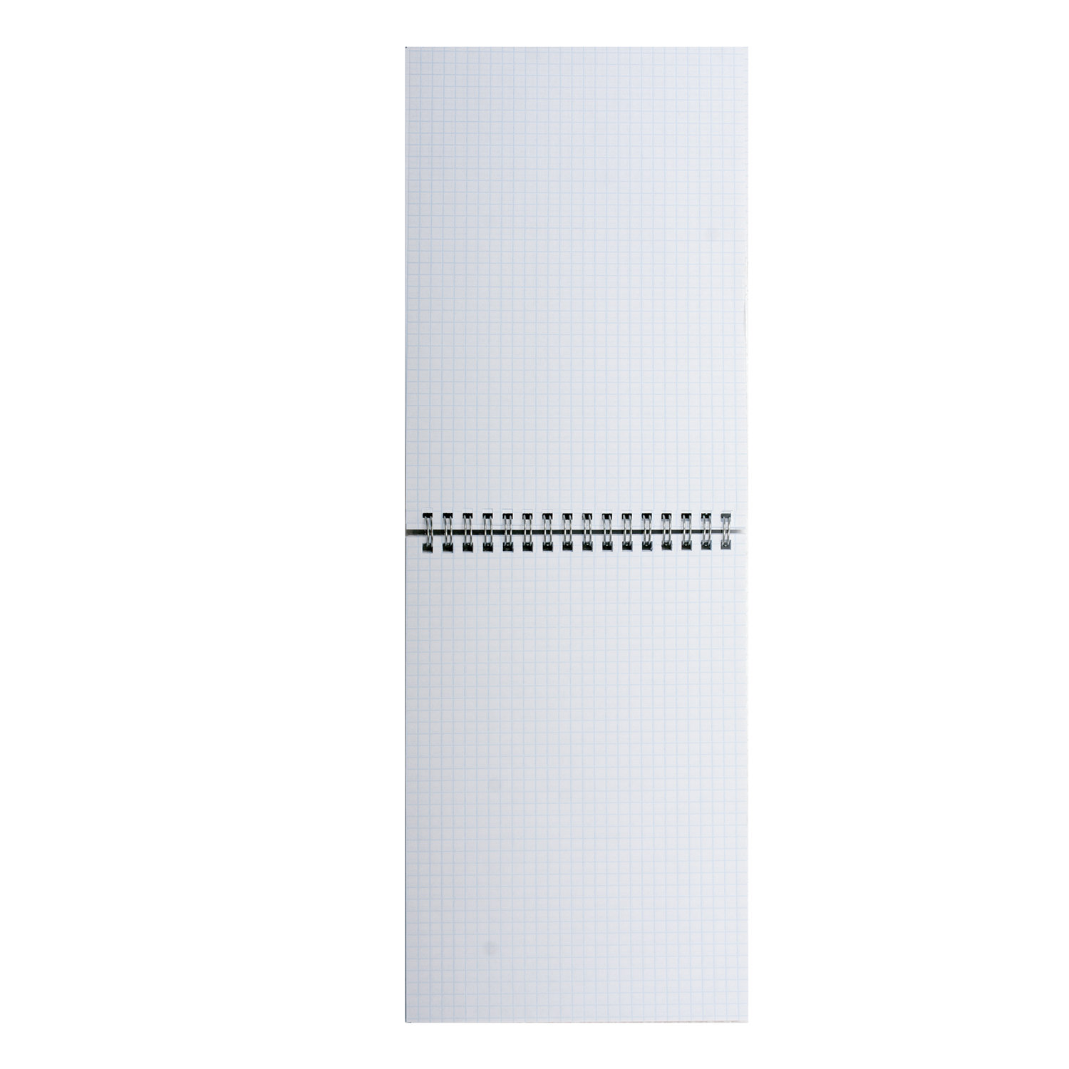 Блокнот формата А6 на евроспирали содержит 60 листов с линовкой в клетку, что позволяет зафиксировать большой объем нужной информации. Имеет верхнее расположение переплета. Обложка выполнена из мелованного картона плотностью 200 г/м2. Внутренний блок состоит из белой офсетной бумаги плотностью 60 г/м2.
