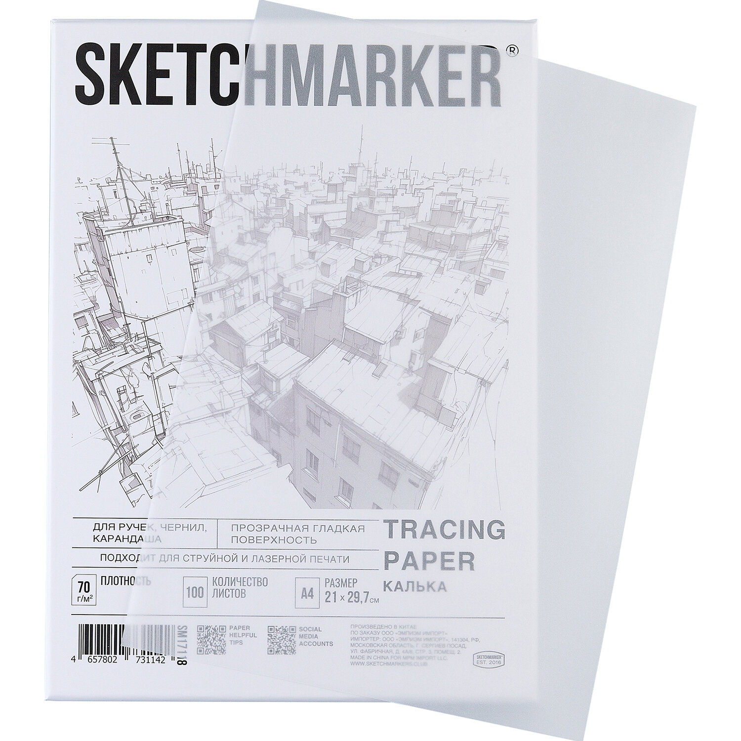 Калька А4 для печати и творчества, 70 г/м2, 100 листов, SKETCHMARKER