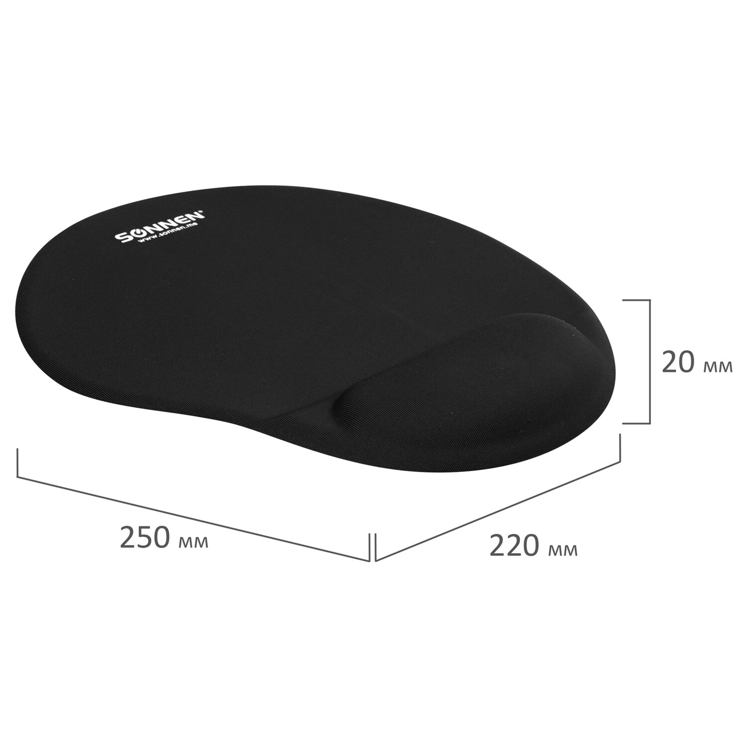 Коврик для мыши с подушкой под запястье SONNEN, полиуретан + лайкра, 250х220х20мм