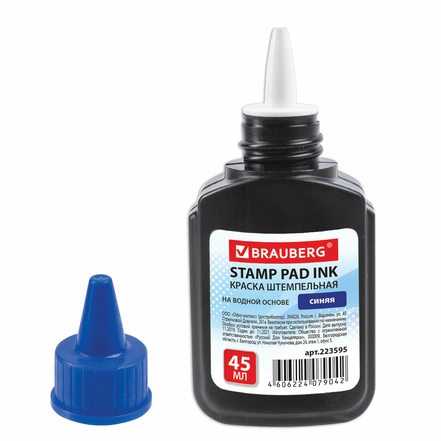 Краска штемпельная BRAUBERG, синяя, 45 мл, на водной основе