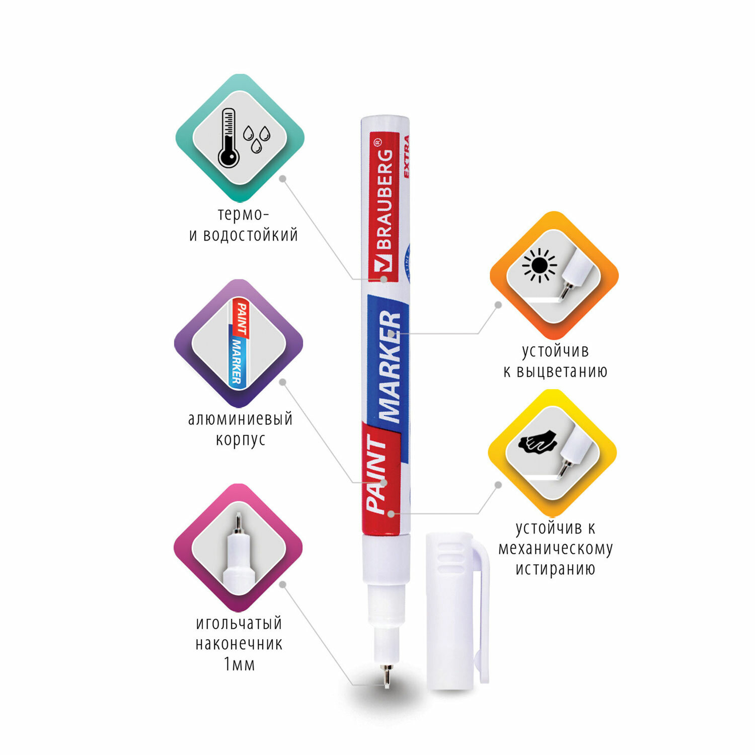 Маркер-краска лаковый BRAUBERG EXTRA предназначен для маркировки на различных поверхностях: бетон, дерево, стекло, металл, резина, пластик как в промышленных, так и в бытовых целях.