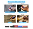 Высококачественные чернила белого цвета с лаковым эффектом идеально подходят для нанесения долговечной маркировки на любые поверхности. Благодаря усиленной формуле чернил краска ложится ровным слоем, полностью закрашивая поверхность. С помощью игольчатого прочного наконечника, выполненного из полиацетали с шириной линии письма 1 мм, можно легко наносить тонкие линии. Быстросохнущие чернила предотвращают смазывание в процессе маркировки. После высыхания надписи становятся термо- и водостойкими, а также устойчивыми к выцветанию и механическому истиранию. Отлично подходит для маскировки бытовых дефектов, таких как царапины и сколы. Надежный помповый механизм подачи чернил предотвращает вытекание и разбрызгивание в процессе использования, а также преждевременное высыхание. Корпус маркера выполнен из алюминия, внутри находятся 2 металлических шарика для взбалтывания краски. Цвет колпачка соответствует цвету чернил.