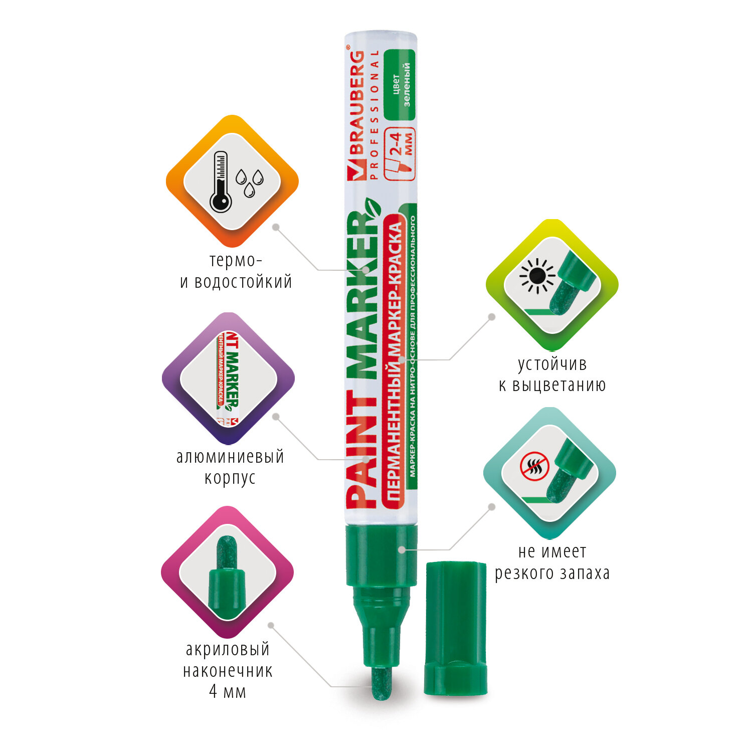 Маркер-краска лаковый BRAUBERG Professional (paint marker) 2-4 мм, зеленый