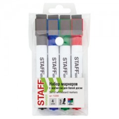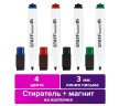 Маркеры для белой доски на магните со стирателем STAFF "Manager" набор 4 цвета