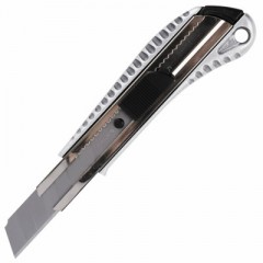 Нож канцелярский 18 мм BRAUBERG "Metallic", металлический корпус (рифленый), автофиксатор
