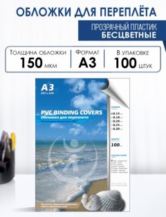 Обложки пластиковые А3 бесцветные 0,15мм