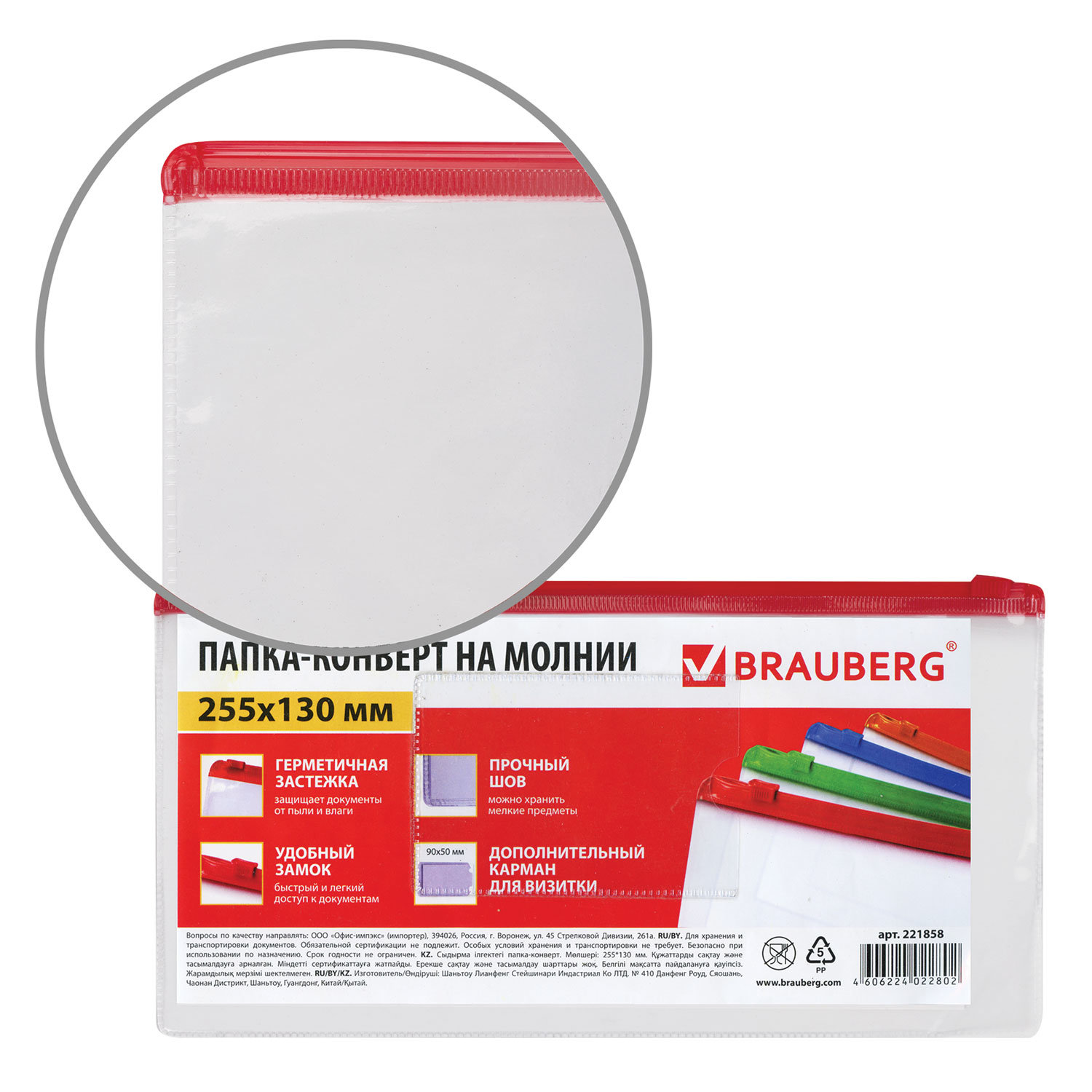 Папка-конверт на молнии BRAUBERG , 255*130 мм