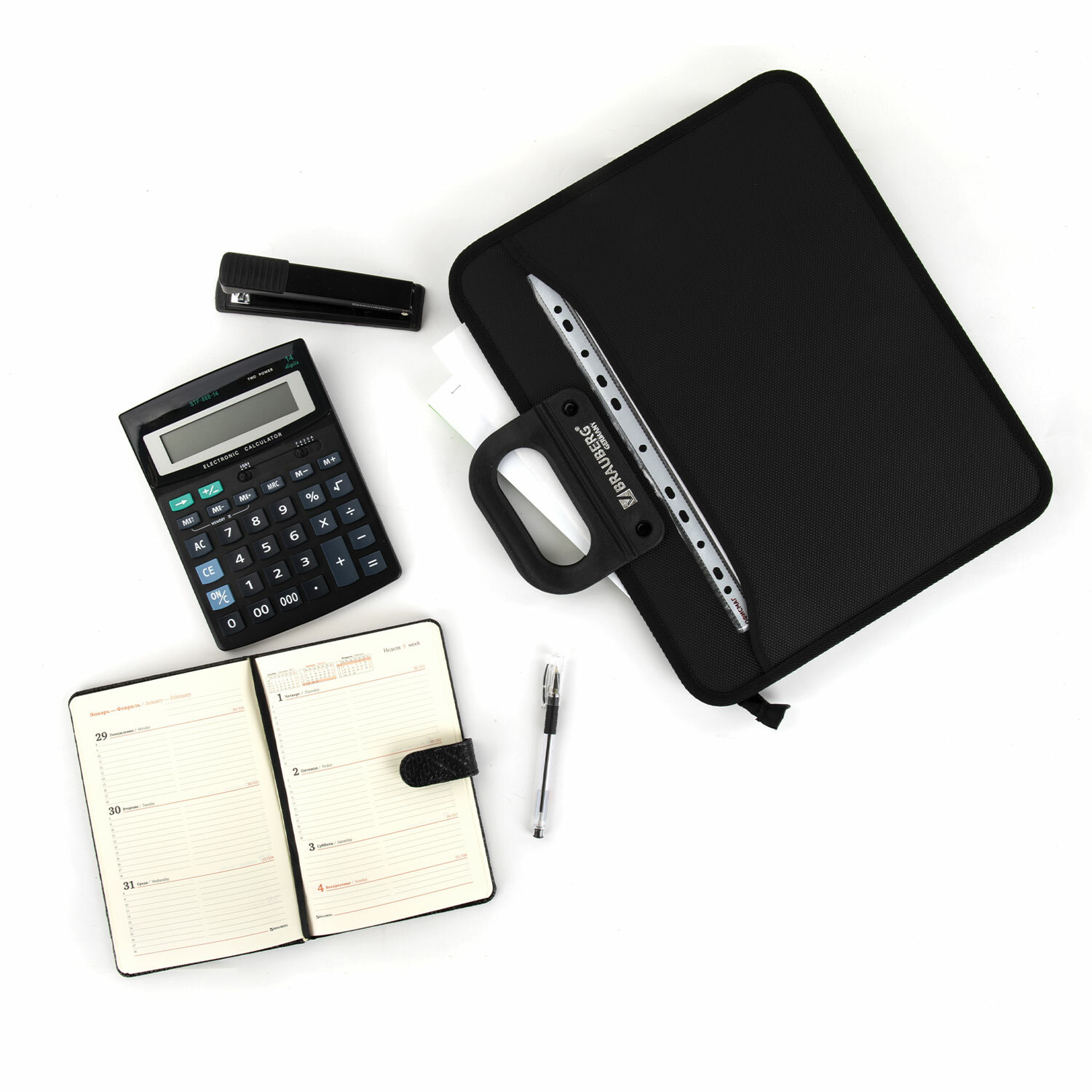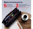 Портфель формата А4 (390х315х120 мм) изготовлен из плотного пластика толщиной 1 мм, выполнен в солидном черном цвете с фактурой "бисер" и имеет 3 отделения и 6 карманов. Усиленные ручки обеспечивают надежность в процессе эксплуатации. Портфель застегивается на молнию. Края окантованы тканью, что придает изделию презентабельный вид.