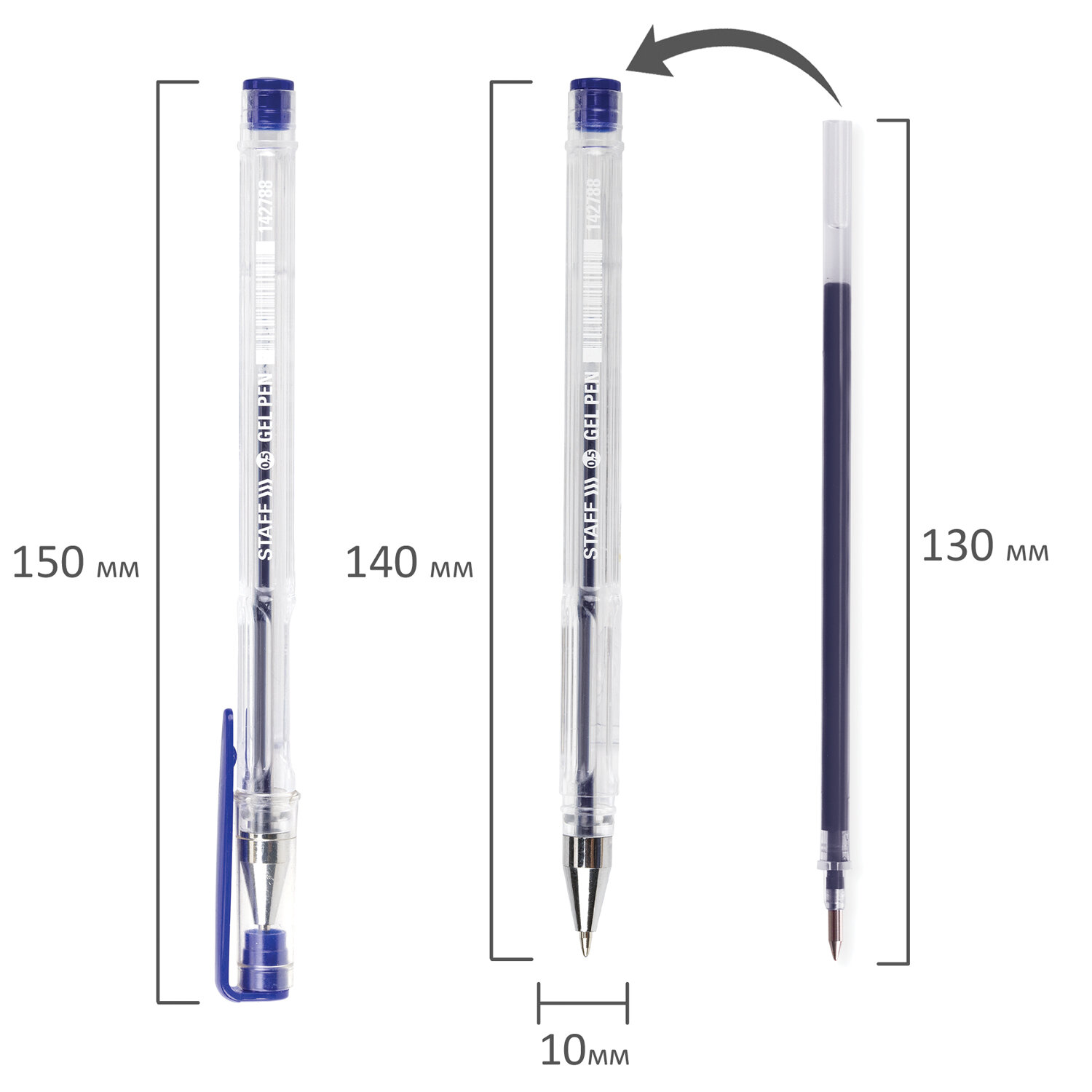 Имеет шестигранный прозрачный корпус с рифленой поверхностью в зоне захвата. Детали ручки выполнены в цвет синих чернил. Сменный стержень длиной 130 мм со стандартным наконечником позволит использовать ручку максимально долго. Диаметр пишущего узла, равный 0,5 мм, создает линию письма, равную 0,35 мм.