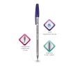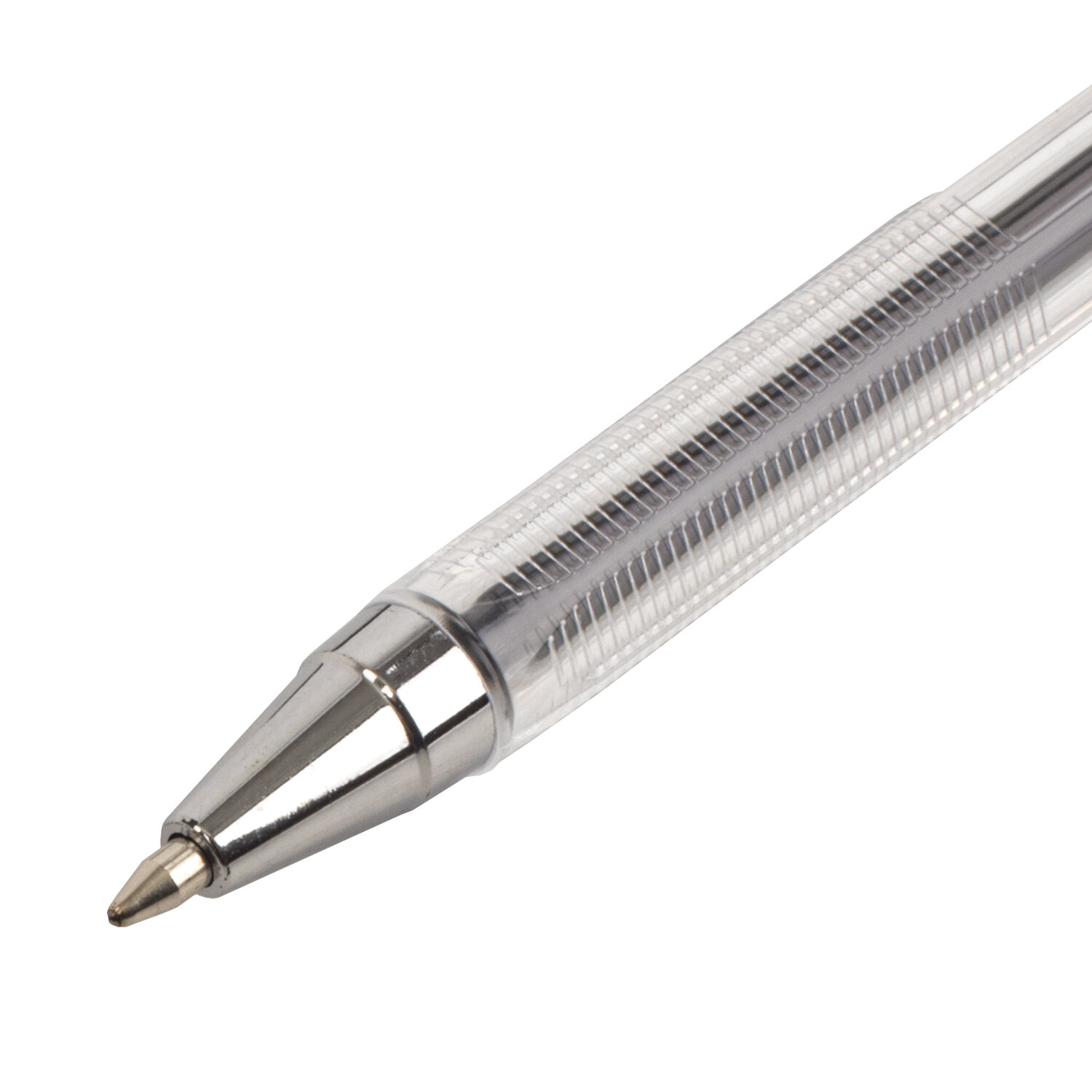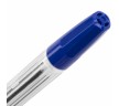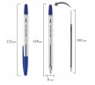Шариковая ручка в прозрачном корпусе обладает удобной зоной захвата с рифлением, препятствующим скольжению пальцев при письме. Снабжена сменным стержнем 140 мм, что позволяет увеличить срок службы. Диаметр пишущего узла 0,7 мм создает тонкую линию письма, равную 0,35 мм. Длина линии письма составляет 2000 метров: такого расхода хватит надолго. Цвет чернил - синий.