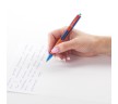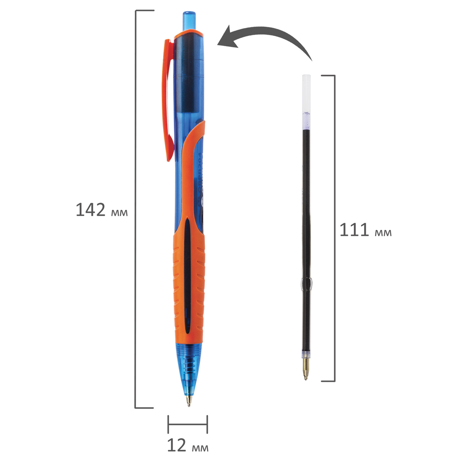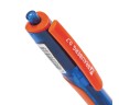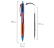 Имеет круглый корпус синего цвета с прорезиненными вставками и резиновым грипом в зоне захвата для удобства письма. Сменный стержень длиной 107 мм с евронаконечником позволит использовать ручку максимально долго. Диаметр пишущего узла, равный 0,7 мм, создает тонкую линию письма, равную 0,35 мм. Специальные масляные чернила синего цвета ультрапониженной вязкости и надежный пишущий узел обеспечивают непревзойденно мягкое и комфортное письмо.