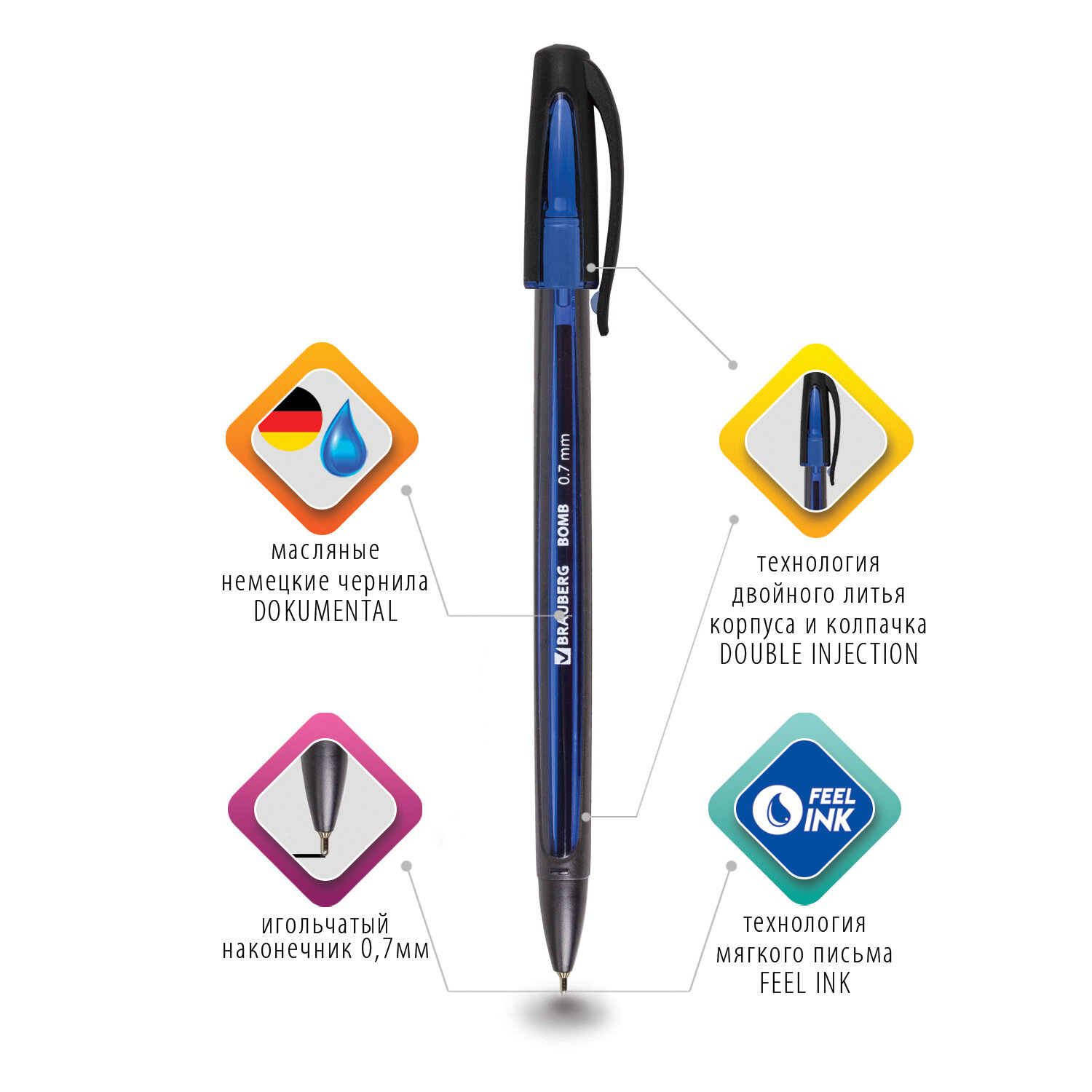 Серия шариковых масляных ручек BRAUBERG "BOMB" - это эксклюзивный дизайн и непревзойденно мягкое и удобное письмо.