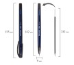 Модель изготовлена из высококачественных материалов, сменный стержень заправлен немецкими чернилами на масляной основе DOKUMENTAL синего цвета. Удобный прорезиненный корпус - double injection technology. Диаметр пишущего узла 0,7 мм создает ровную линию письма 0,35 мм. Корпус выполнен в сочетании синего и черного цветов.