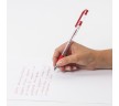 Шариковая ручка в тонированном корпусе и резиновым грипом для удобства письма, исключающим скольжение пальцев. Заправлена чернилами ультрапониженной вязкости. Преимуществом данной модели является наличие сменного стержня, что делает её экономически привлекательной. Длина стержня составляет 134 мм. Диаметр пишущего узла 0,7 мм создает тонкую линию письма 0,35 мм. Цвет чернил - красный. Лаконичный дизайн соответствует офисному стилю.