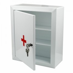 Металлический шкафчик для хранения лекарств. Современный внешний вид, надежная конструкция. Предусмотрено крепление на стене, закрывается на замок.