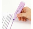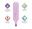 Текстовыделитель лавандового цвета имеет плоскую форму корпуса, диаметр которого 25 мм. Особый пастельный оттенок создает мягкие переходы и позволяет равномерно выделить текст. Скошенный наконечник имеет толщину линии письма от 1 до 5 мм, что обеспечивает удобство при работе с текстом, напечатанным мелким шрифтом, или таблицами. Благодаря особой водной основе чернил текстовыделитель не высыхает без колпачка в течение 8 часов. Текстовыделитель обладает экономным расходом чернил, при этом длина линии письма достигает 300 метров. Чернила быстро впитываются и тем самым предотвращают размазывание в процессе использования. Цвет клипа и корпуса текстовыделителя соответствует цвету чернил.