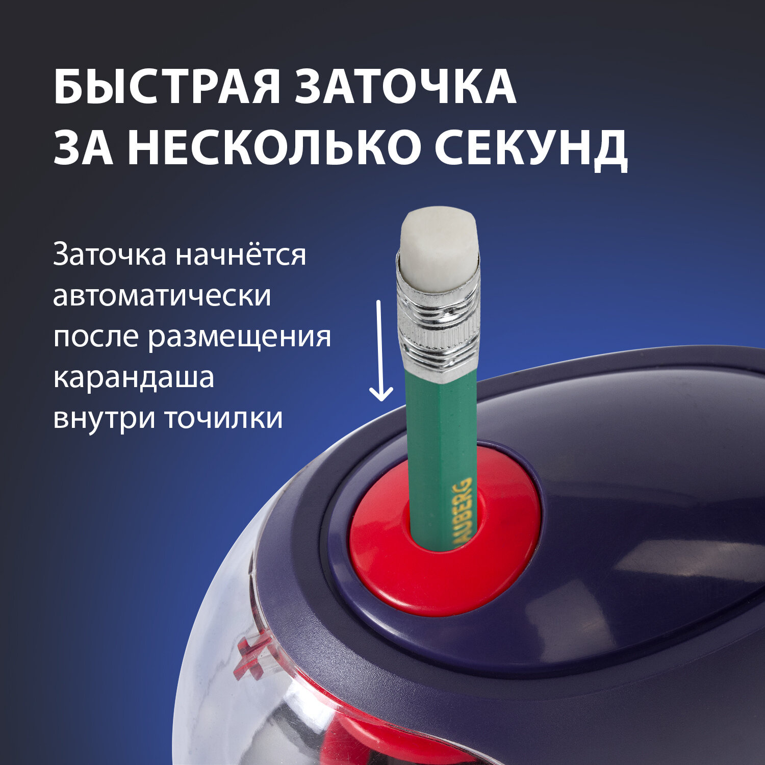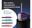 Электрическая точилка со съемным контейнером для сбора мусора и стальным спиралевидным лезвием, работает от 4 батареек АА (в комплект не входят). Предназначена для затачивания деревянных и пластиковых карандашей диаметром 6-8 мм.
