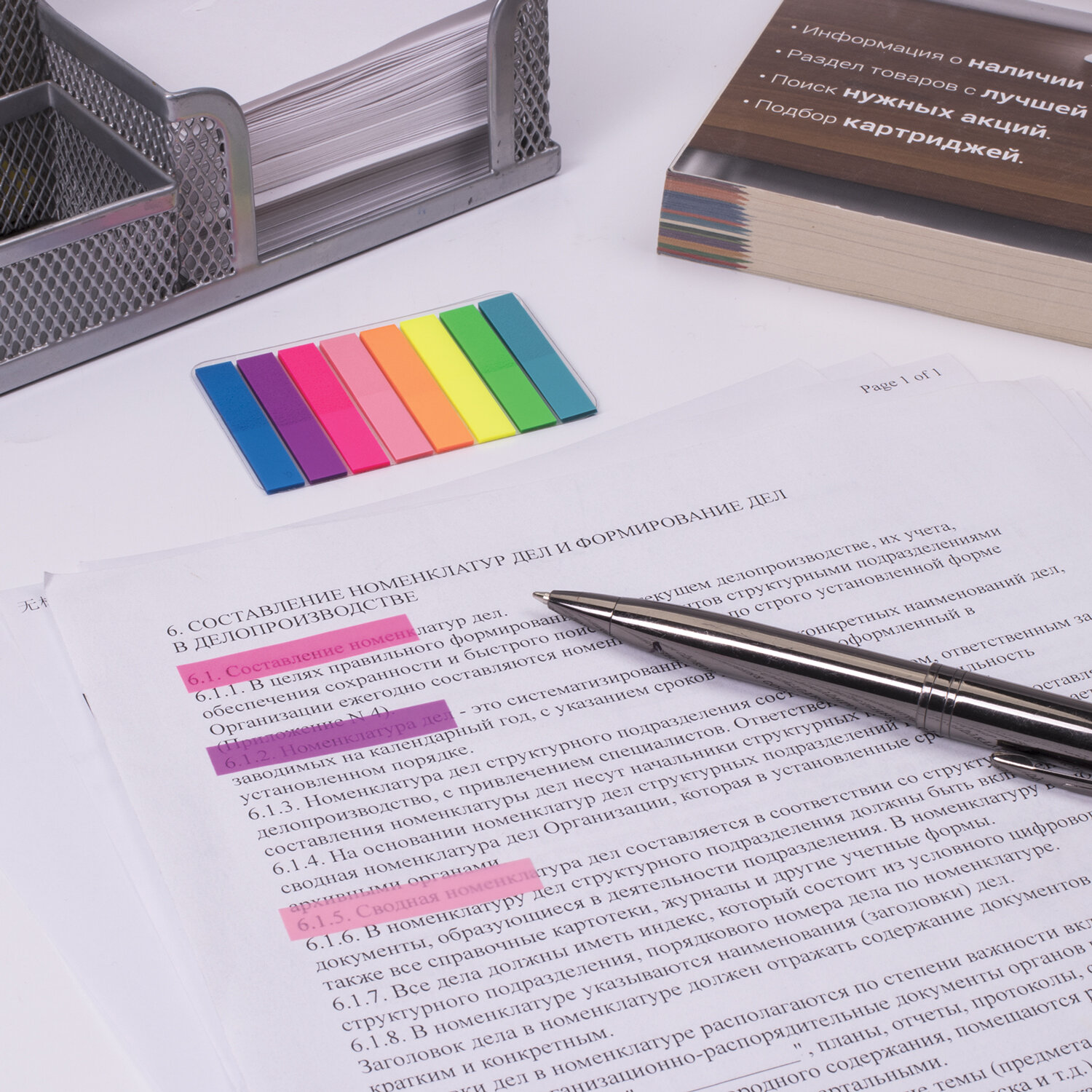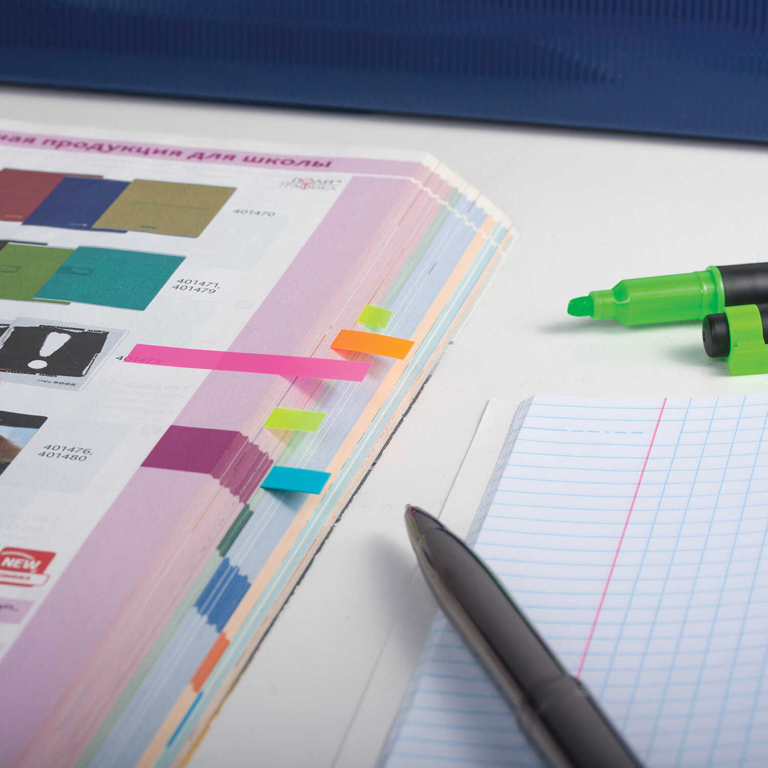 Яркие пластиковые полупрозрачные закладки BRAUBERG акцентируют внимание на важных страницах книги, журнала, каталога и др.