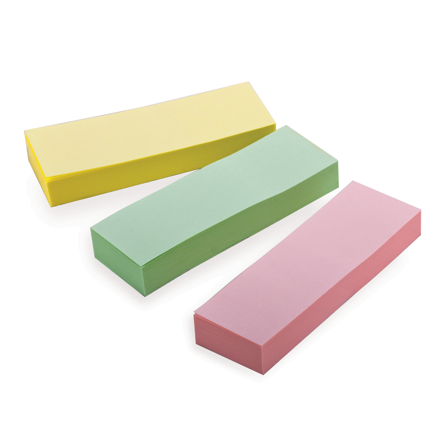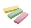Набор бумажных закладок 3 пастельных цветов размером 76х25 мм состоит из 300 листов, по 100 закладок каждого цвета. Клейкий слой - 22 Н/м. Легко клеятся к любой поверхности и не оставляют следов. Материал закладок позволяет делать надписи ручкой и карандашом.