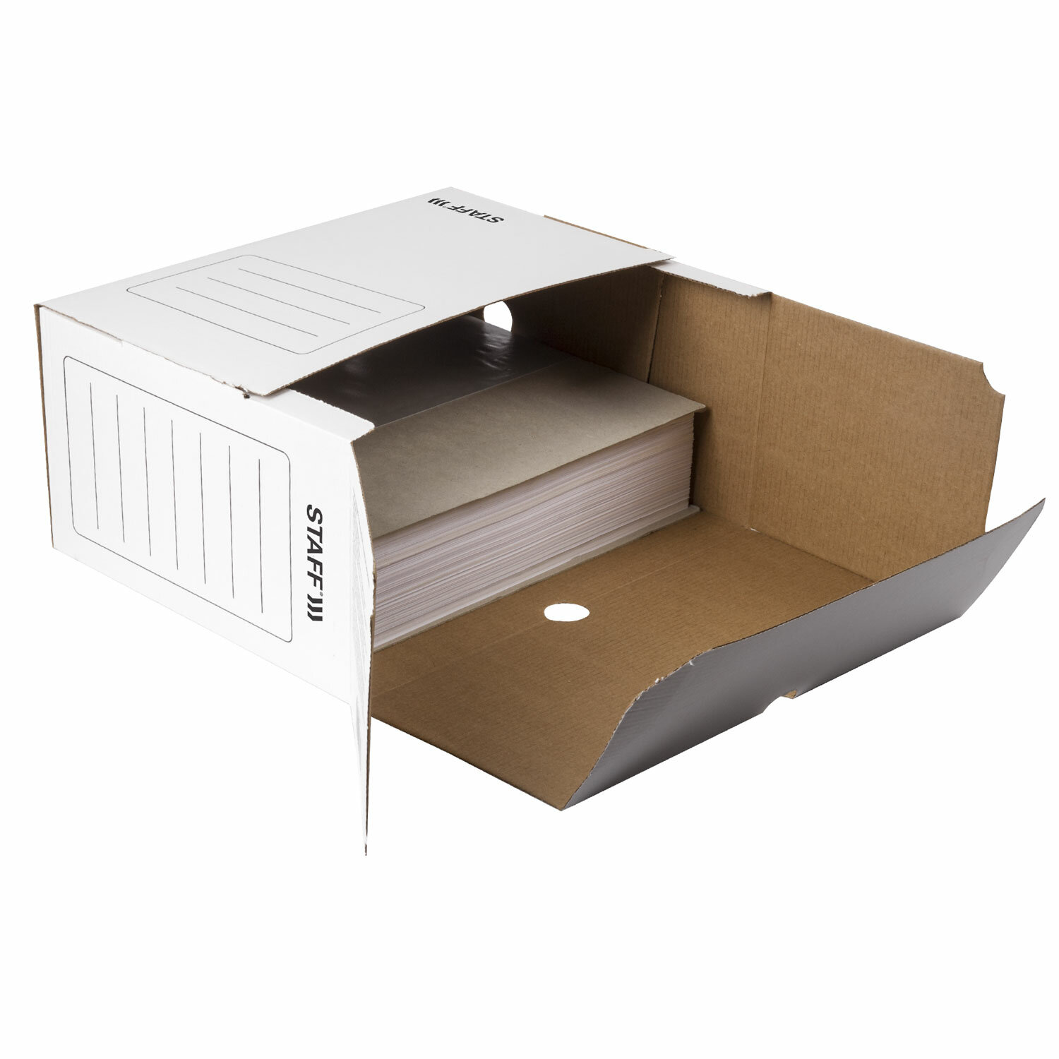 Короб архивный с клапаном STAFF А4 (260х325мм), плотность 150мм, микрогофрокартон, белый