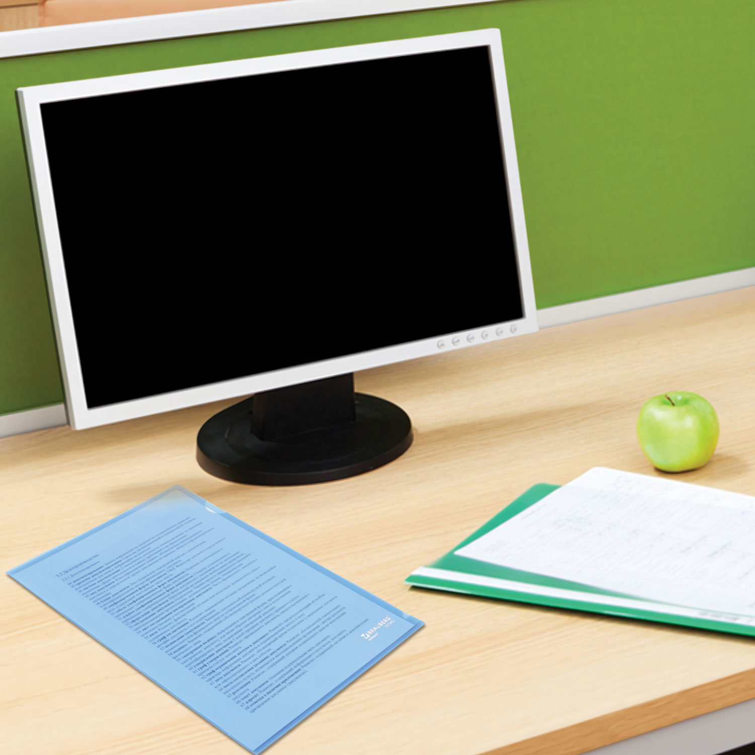 Папка формата А4 выполнена из высококачественного полипропилена плотностью 150 мкм. Она предотвращает смятие, загрязнение или намокание бумаг. Прозрачный материал позволяет определить содержимое, не открывая папку. Специальная выемка для перелистывания листов облегчает работу с документами.